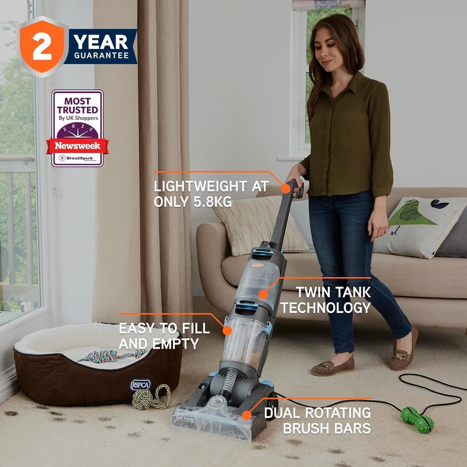- Dual Rotating Brushes: The Vax Dual Power Pet Advance utilizes powerful dual rotating brushbars, actively lifting embedded dirt and pet hair from deep in your carpets.