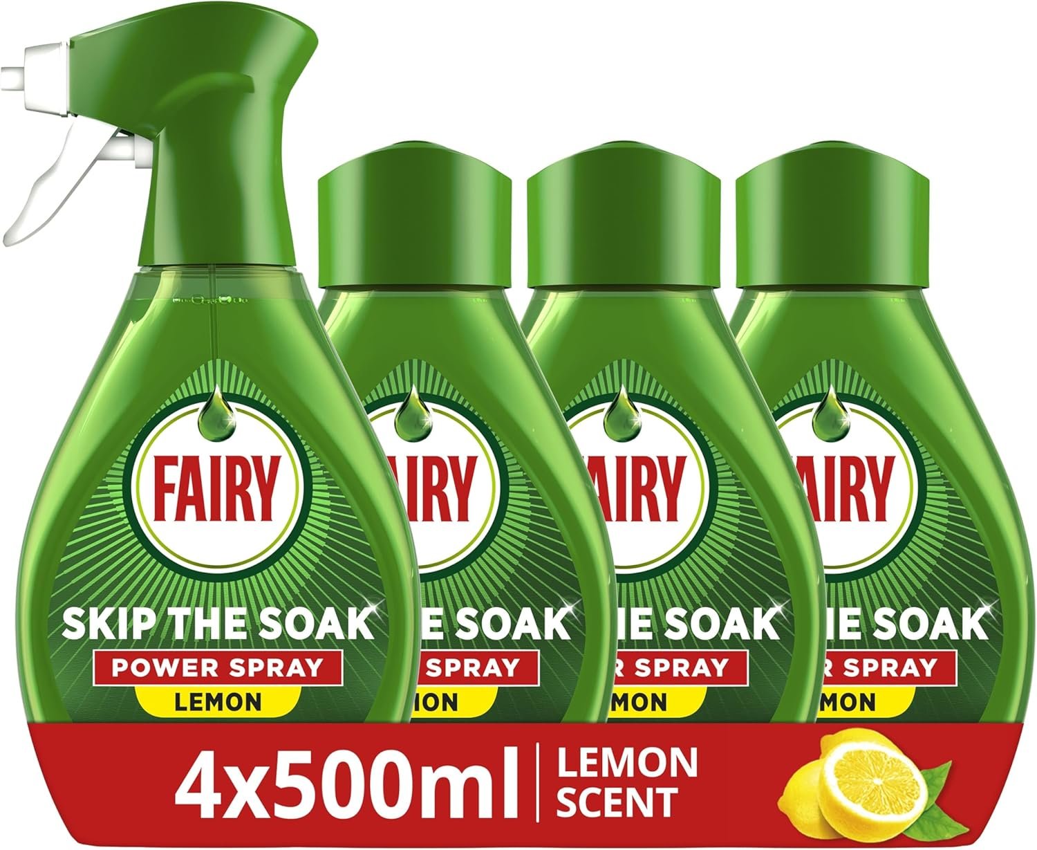 The Fairy Skip the Soak Dish Spray Kit Lemon from the Fairy Store offers a powerful, hassle-free way to tackle grease and grime on dishes and kitchen surfaces. Its innovative formula delivers the effectiveness of an overnight soak in just minutes, letting you skip lengthy pre-washing. With a reusable sprayer and four refills, this kit is perfect for both hand-washing and pre-treating dishwasher loads, making everyday clean-up faster and easier. Elevate your kitchen routine and enjoy sparkling results without the wait!