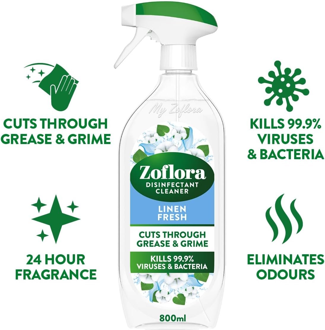 Experience effortless home cleaning with the Zoflora Linen Fresh Multipurpose Disinfectant Spray from the Zoflora Store. This powerful 800 ml antibacterial, multi-surface spray kills 99.9% of bacteria and viruses, cuts through grease and grime, and leaves your space smelling of freshly laundered linens. Safe for homes with pets, its patented odour elimination technology ensures lasting fragrance for at least 24 hours. Ideal for high-traffic areas, Zoflora’s versatile formula keeps your home hygienic and beautifully scented, making it a must-have for every household.
