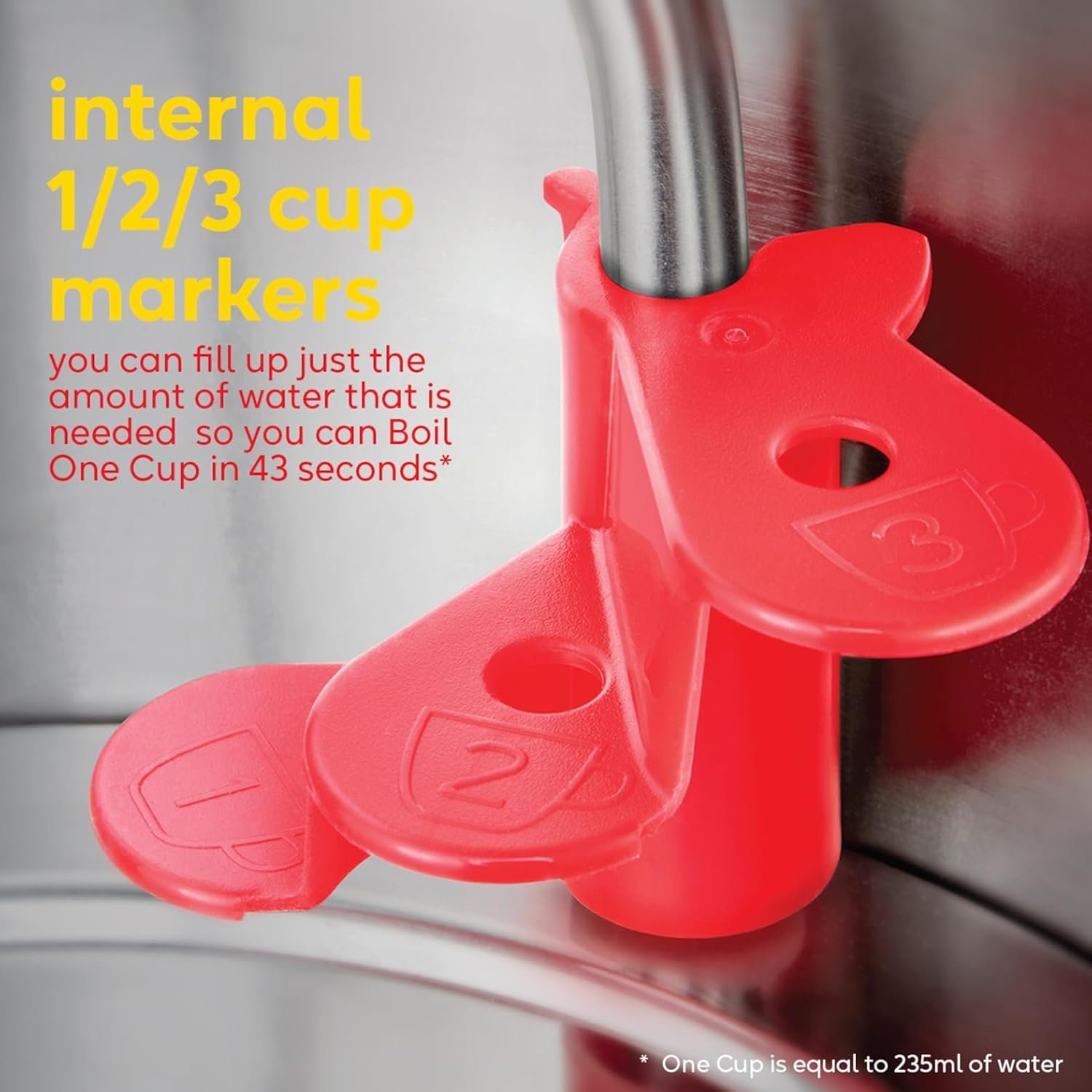 - Rapid Boil Indicators: Internal cup markers with quick boil capability allow for energy savings and convenience on busy mornings.