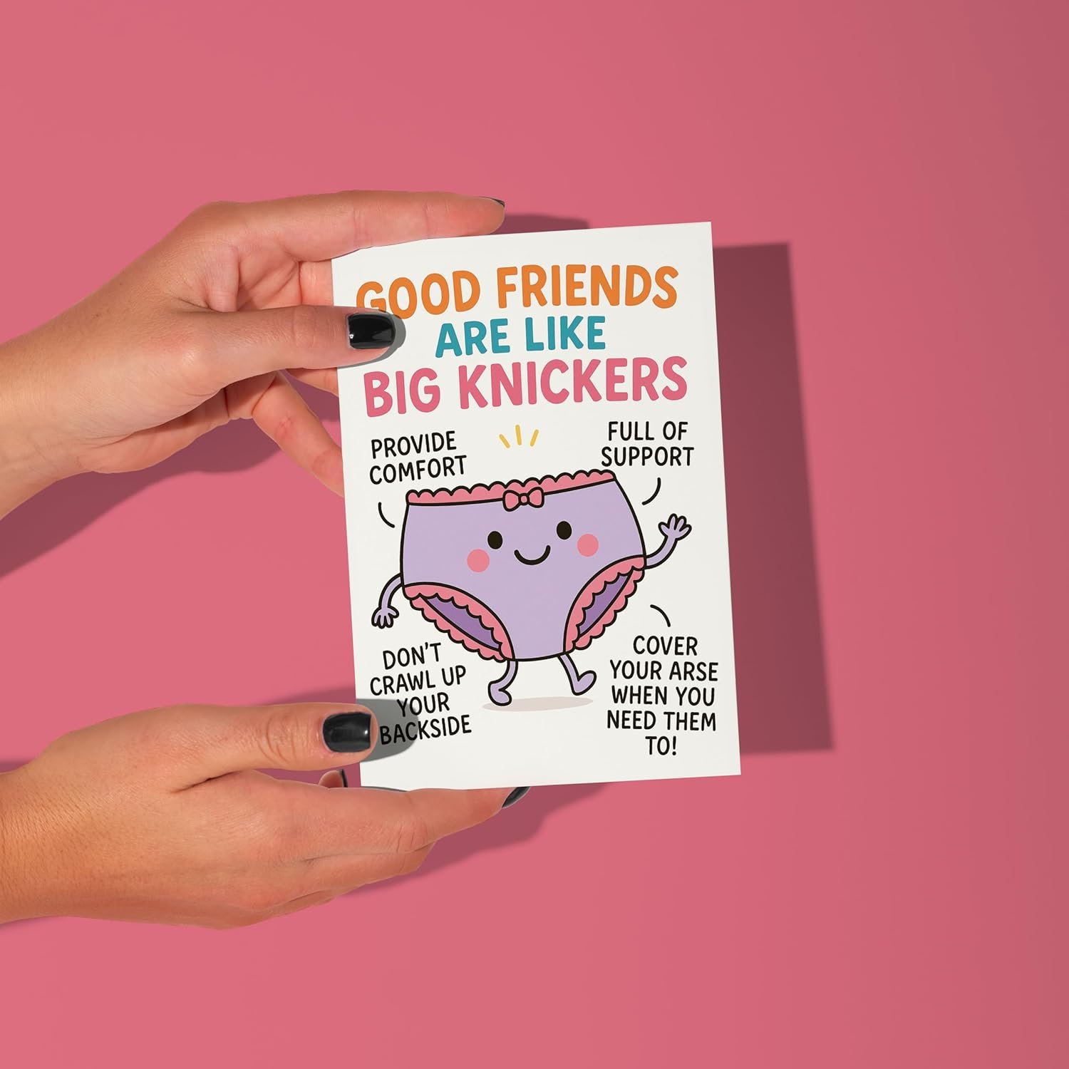 The LimaLima Funny Best Friend Birthday Card for Women brings laughter and charm to every celebration with its quirky 'Good Friends Are Like Big Knickers' design. Printed on premium 300gsm card and paired with a colorful envelope, this A5 card offers high quality and a blank inside for your heartfelt message. Perfect for besties who love humor, it’s a delightful way to show appreciation and make your friend's day special. Choose LimaLima for a memorable and fun birthday greeting!